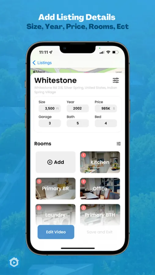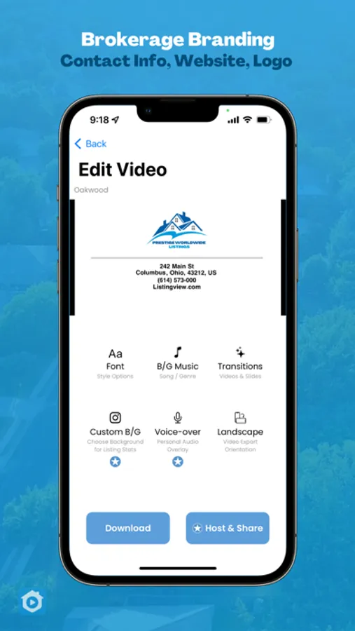 Want to represent your brokerage while adding your custom branding? No problem! Upload your brokerage logo & your headshot with contact information that automatically shows up at the end of the video + listing details (sq. ft., Beds, Baths, Year Built & Price).