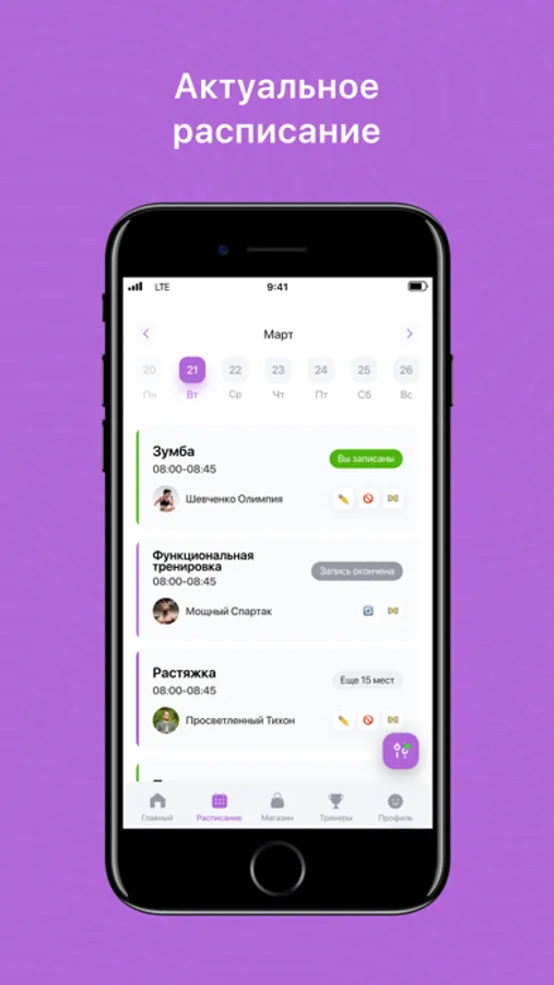 Посмотреть актуальное расписание тренировок;