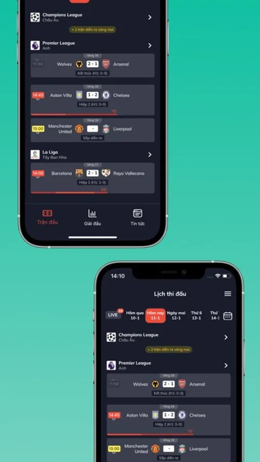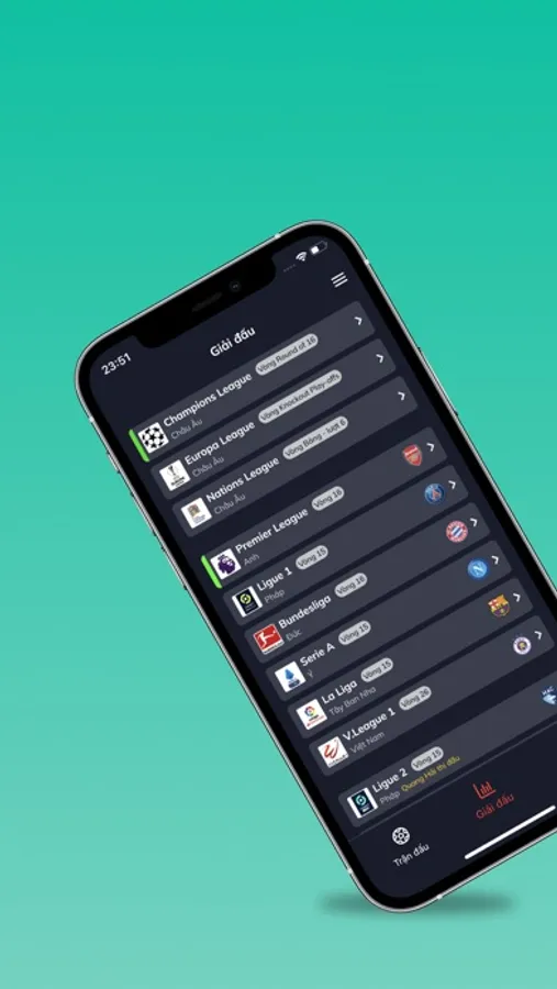 - Tổng hợp tất cả các giải đấu bóng đá lớn của Việt Nam và quốc tế như: V League, Premier League, La Liga, Serie A, Bundesliga, Ligue 1, UEFA Champions League, UEFA Europa Conference League Euro, AFC U23 Championship, AFF Suzuki cup, Ligue 2, Europa League, Nations League...