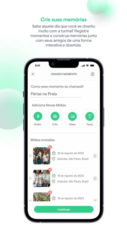 As novas funcionalidades da versão 0.8.0 deixaram nosso espaço de lembranças ainda mais aconchegante ao simplificar a forma de convidar conexões para uma memória, reprojetar a tela de busca, adicionar apresentação de funcionalidade no onboarding, incluir notificações push, aperfeiçoar os requisitos de criação de senha, abrir espaço para criação de bio no perfil e deixar a tela de gravação de áudio mais intuitiva.