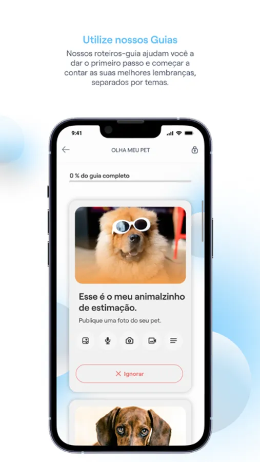 Nossa plataforma Hey AVA é como um convite para que, através de vídeos, fotos, textos, voz, realidade virtual e muita interatividade, você eternize os momentos que mais gosta de reviver com apenas um clique. Nossos roteiros-guia foram idealizados para ajudar você a dar o primeiro passo e começar a contar sua história. Organizamos suas memórias de forma interativa e cronológica, e você pode deixá-las disponíveis quando, onde e para quem quiser!
