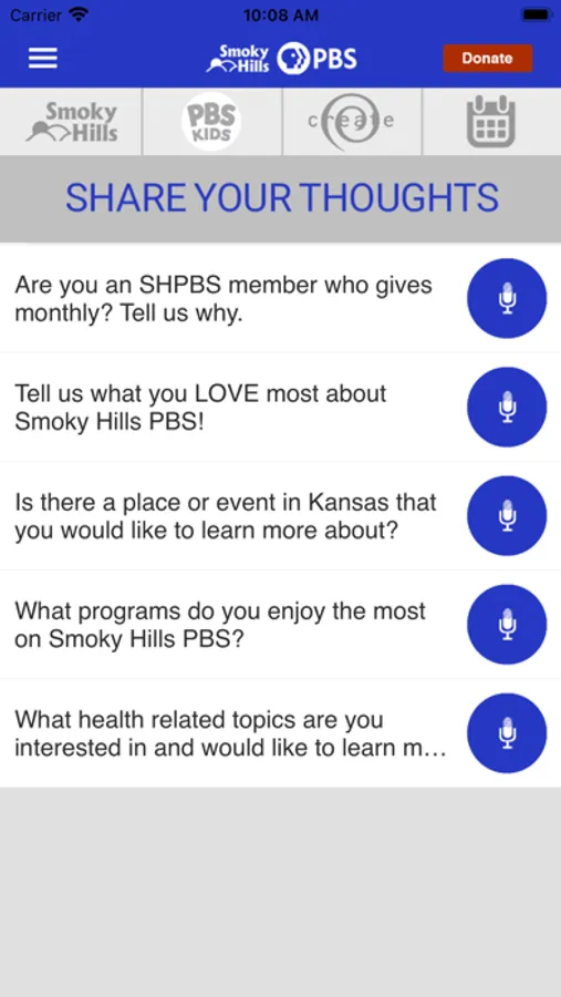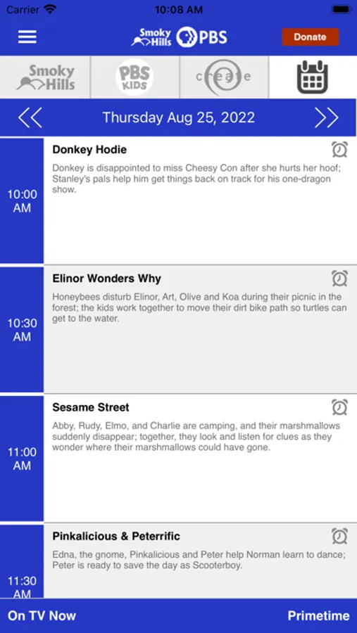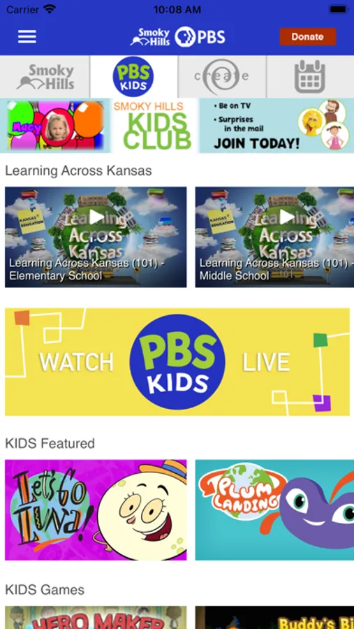 • Integrated program schedules for Smoky Hills PBS, PBS KIDS, and CREATE.