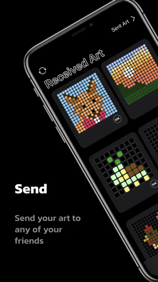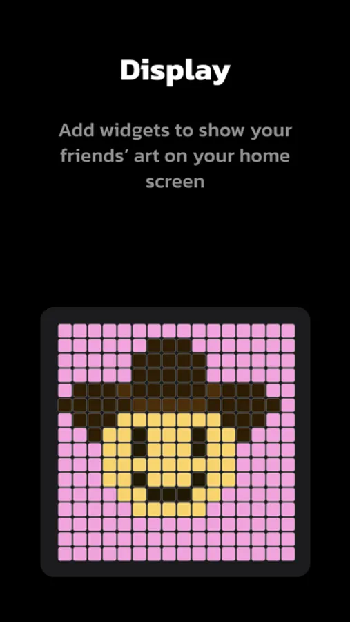 Add your pixel art to your Home Screen with widgets. You can choose a friend whose art you'd like to see on your Home Screen, and the widget will automatically update whenever they send you new art.