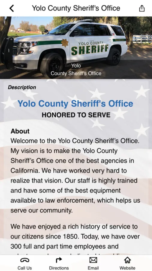 This app is for the employees of the Yolo County Sheriff's Office, their families, retirees and the community they serve. This app contains information about the department as well as safety and crime prevention tips. The Yolo County Sheriff's Office's employees and their families will have access to a full range of wellness tools.