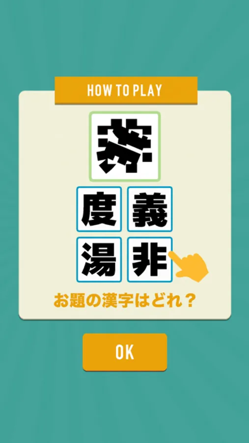 お題の漢字の足りないパーツを見つけてタップするだけ!
