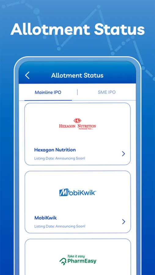 5. IPO Allotment Status, which will shows to investor to check that they allotted applied IPO or not after IPO allotment is out!