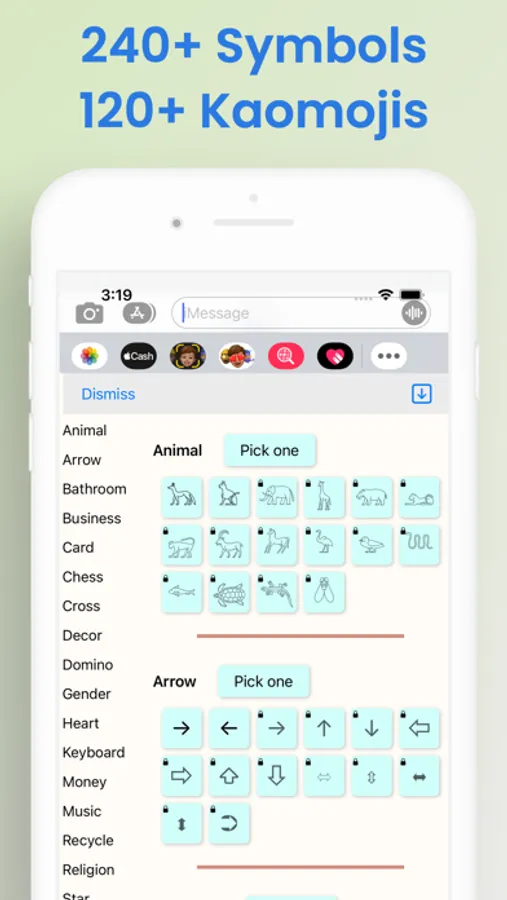 • Tons of symbols and kaomojis.