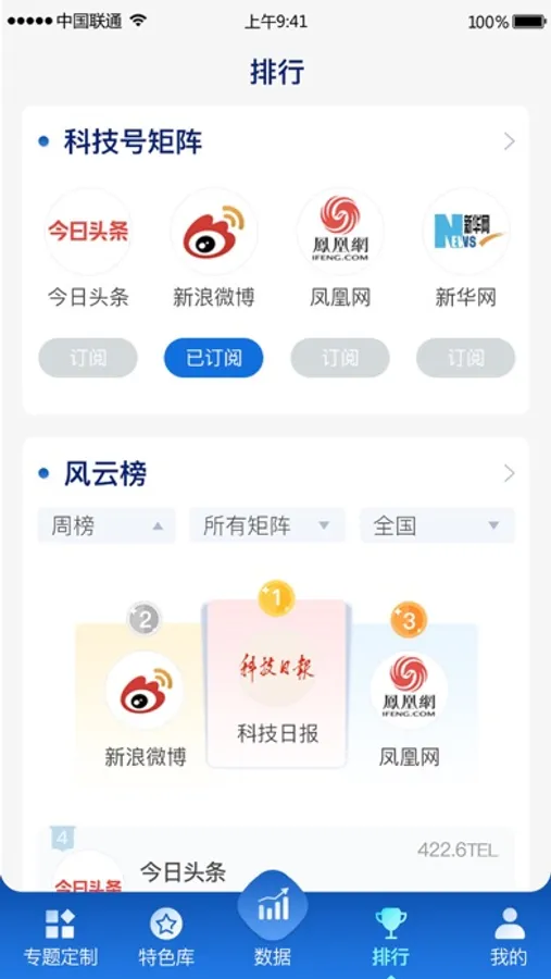 本系统软件提供针对科技资讯的聚合展示、分类检索、数据分析、专题定制、榜单排名、热文推荐等功能,并结合资讯的特征构建多种特色资源库;科技资讯可覆盖20个前沿技术领域,5个以上的行业领域,资讯数据量达1亿条;同时针对特定高端用户实现精准推送功能。