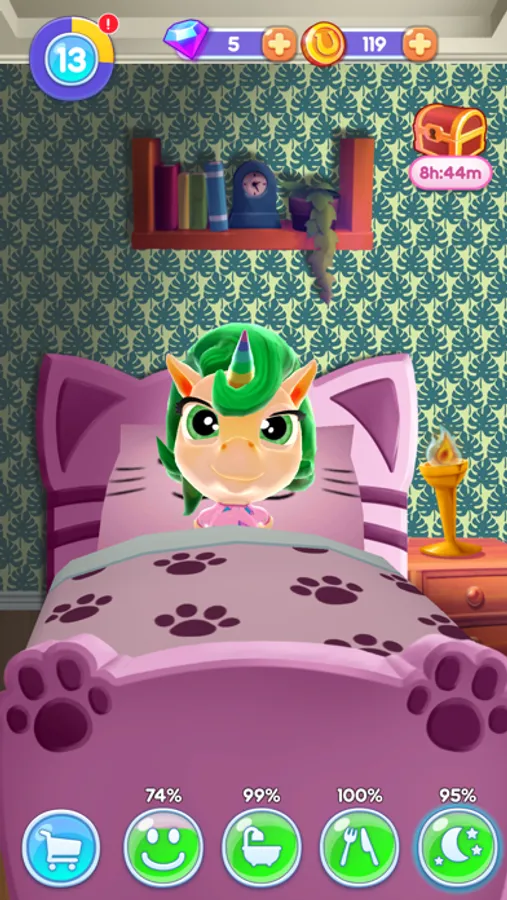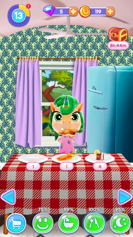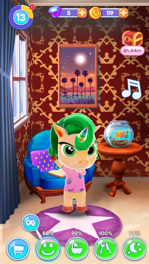- DRESS UP – get home decorations and clothes for your virtual unicorn