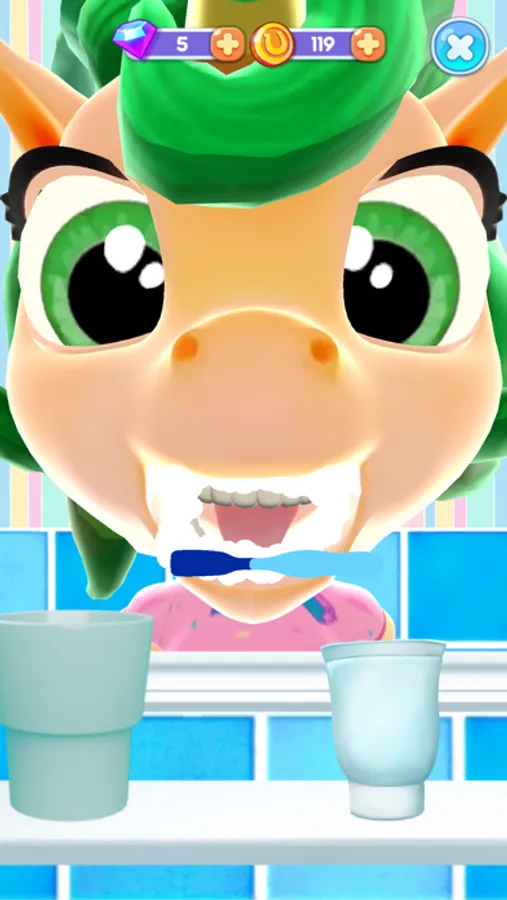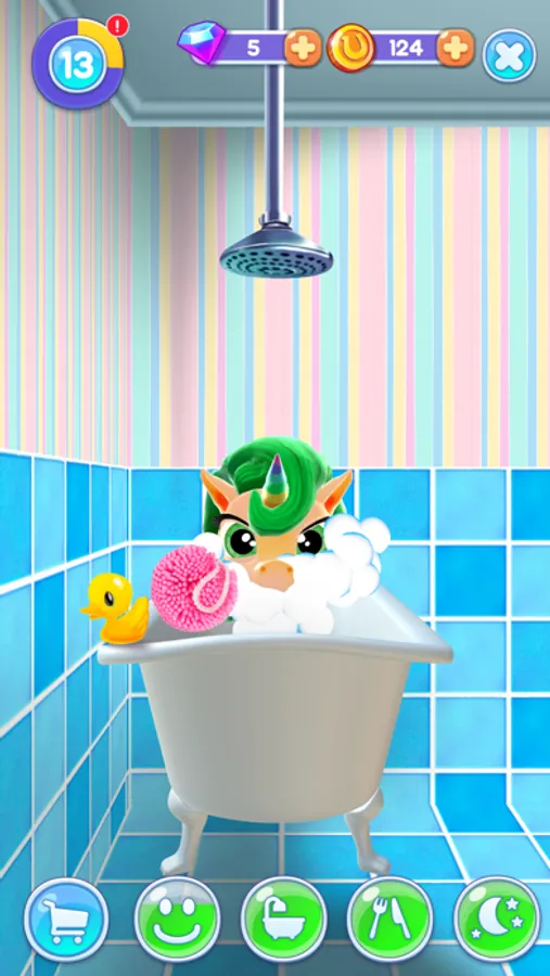Your unicorn Emily likes to be super clean! Bathe her and enjoy unicorn funny reactions!