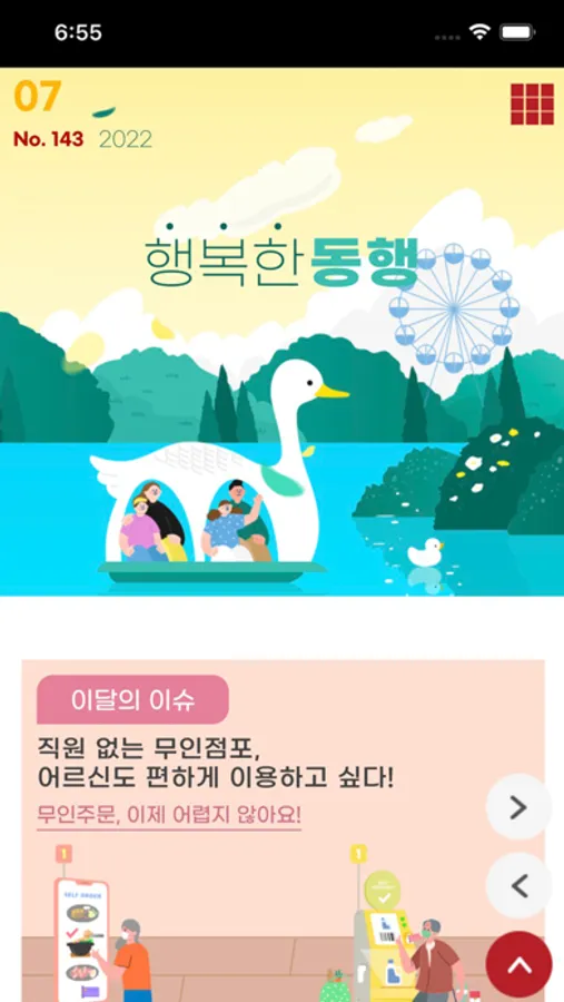 국민건강보험공단에서 매월 발행하는 노인장기요양보험 웹진 ‘행복한 동행’은 노인장기요양보험 제도의 필요성과 효과를 알리고 노후생활에 도움이 되는 정보를 제공하는 웹진입니다.