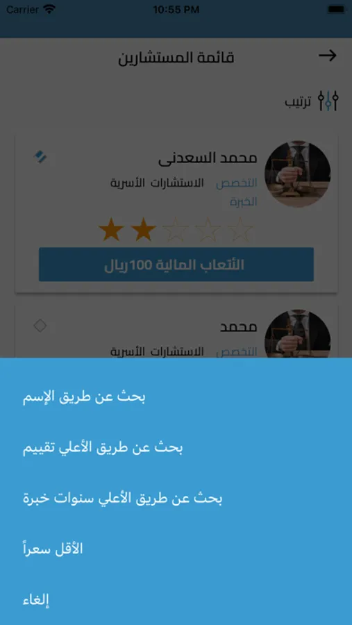 تقدر تطلب استشارة من محامى أو مستشار متخصص وسط مئات المستشارين
