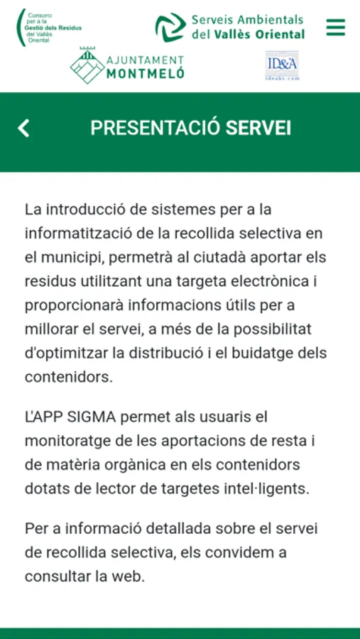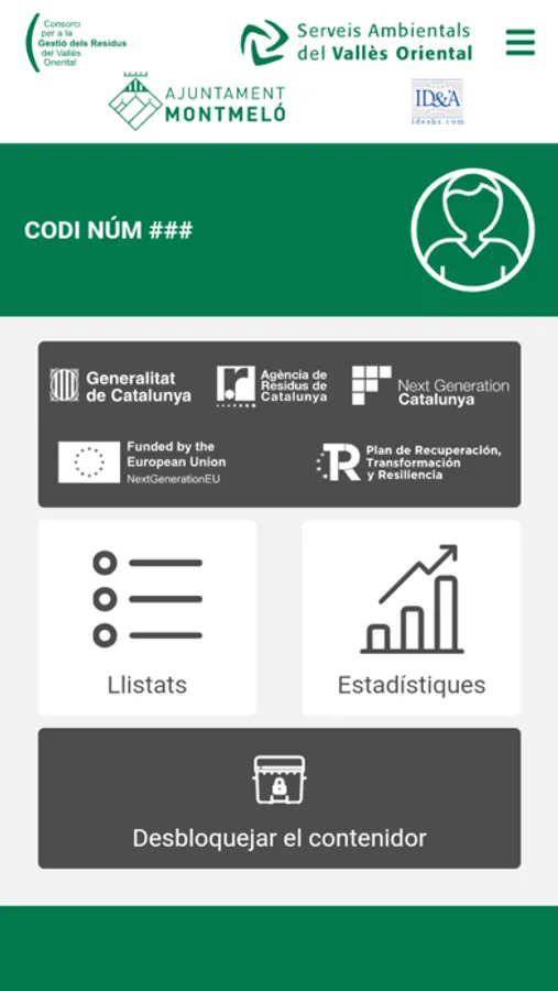 The App allows the user to track and monitor the delivery of waste for roadside containers and collection centers.