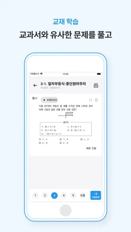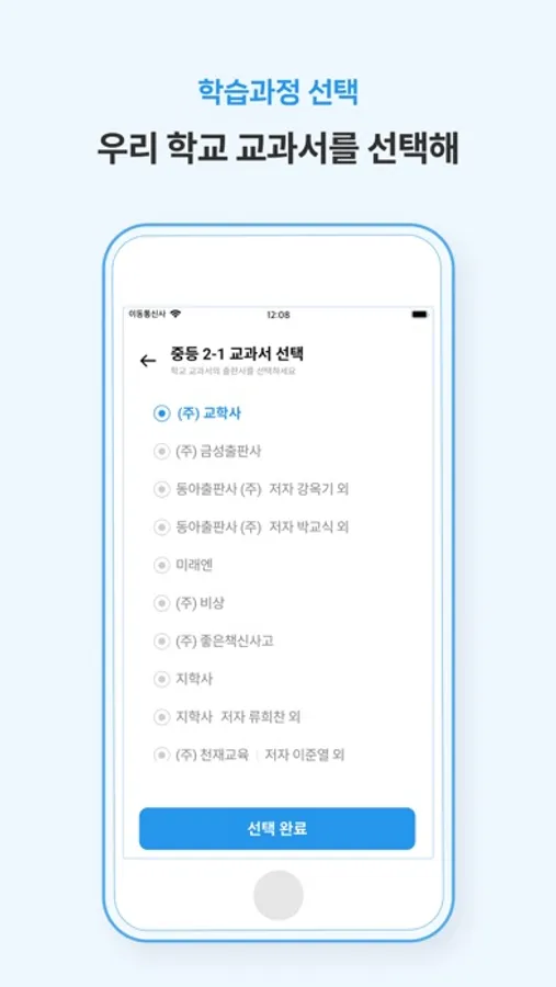 학교에서 사용하는 교과서를 선택하면, 유사한 문제 유형으로 구성된 교재가 만들어져요. 문제를 풀면서 교과서 유형을 익히고 복습할 수 있어요.