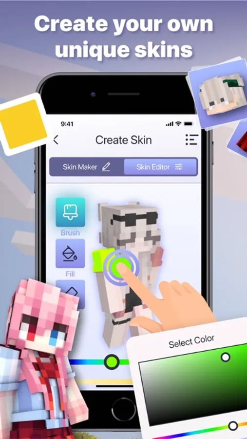 Girl Skins Maker for Minecraft DISCLAIMER: This is an unofficial application for Minecraft. This app is in no way affiliated with Mojang AB. The Minecraft name, the Minecraft trademark and the Minecraft Assets are the property of Mojang AB or their respected owner. All rights reserved according to Mojang Studios Account http://account.mojang.com/documents/brand_guidelines