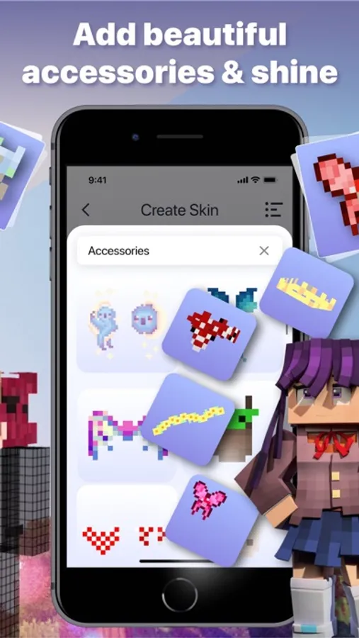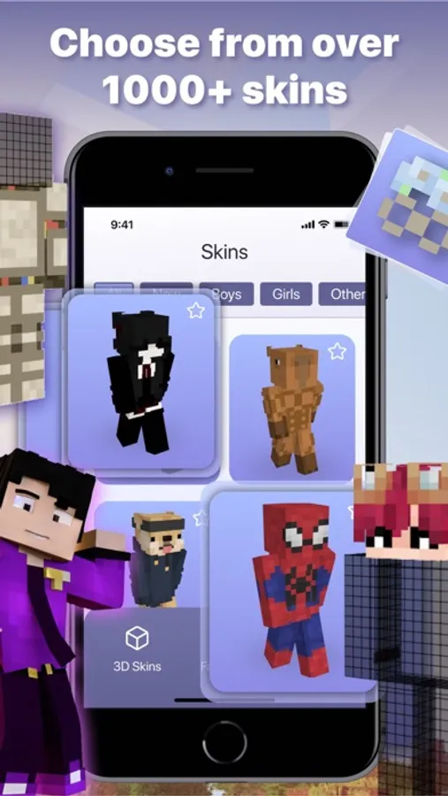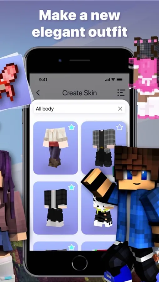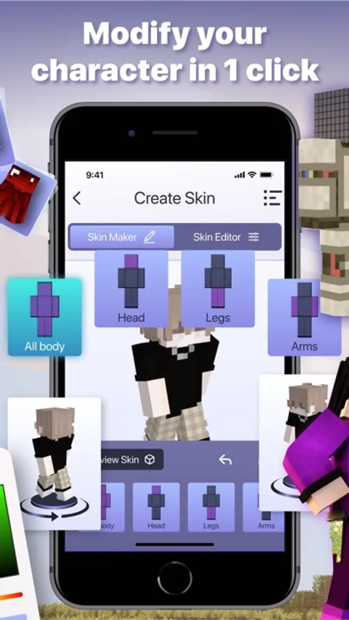 Augmented reality lets you see 3D - models of your skin as you create them in real life. The Skinmaker feature also lets you create a unique look, choosing skin tones, clothes, accessories, and many other extras. This multi-layer system will allow you to use multiple layers when creating your skin, where each layer can be placed on top of any additions and colors.Name and rename your skins as you use them. Simple tips will help you save, export, and share skins with just one click. Create your amazing dream content!