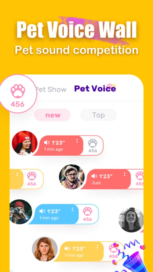 You can upload your pet's cute voice or imitate your own pet's voice to be liked and rated by users all over the world.