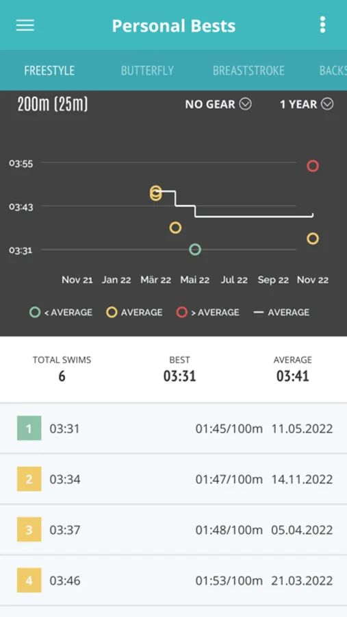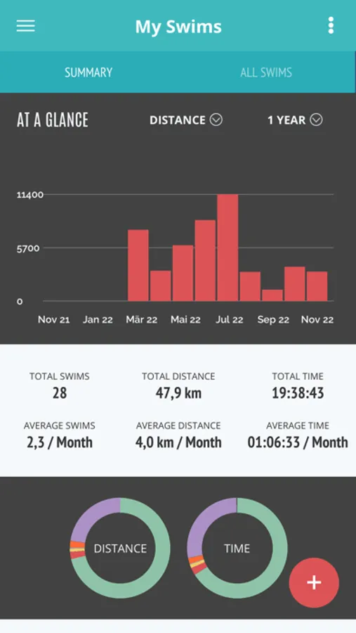 Get That Record: Keep track of your personal bests and averages for every distance, stroke and drill.