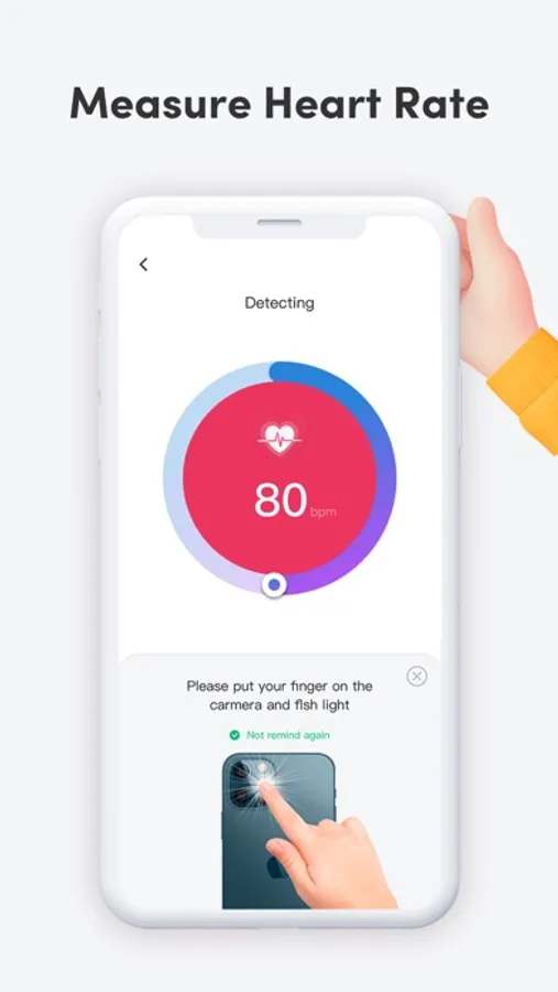 You can easily perform heart rate detection by placing your finger on the back of the camera and flashlight, gently pressing it, and reading the pulse in seconds. You can also save the heart rate (heart rate) of different states (such as exercise, rest, etc.) to the health center for easy observation of your heart rate changes.