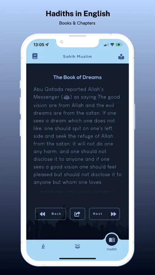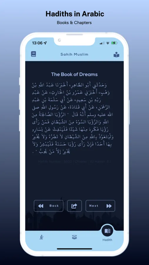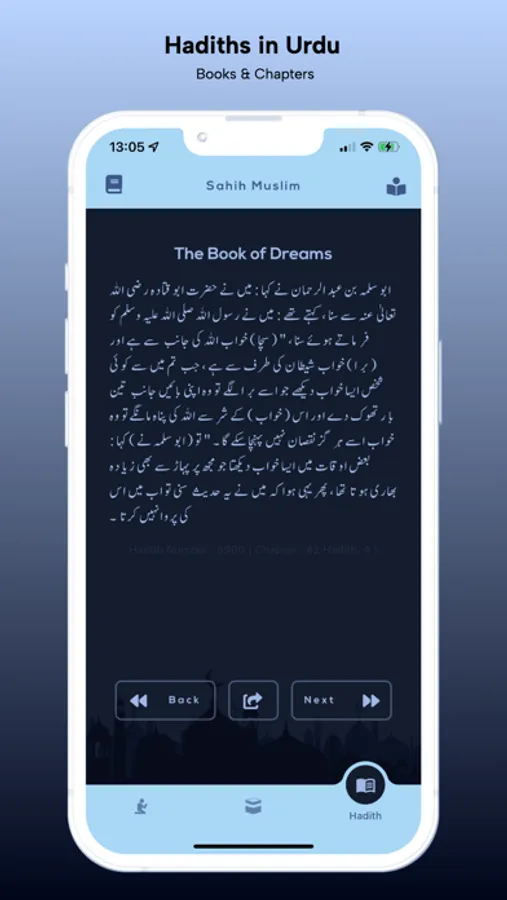 Hadith books with chapter selection capability in Arabic, Urdu and English.