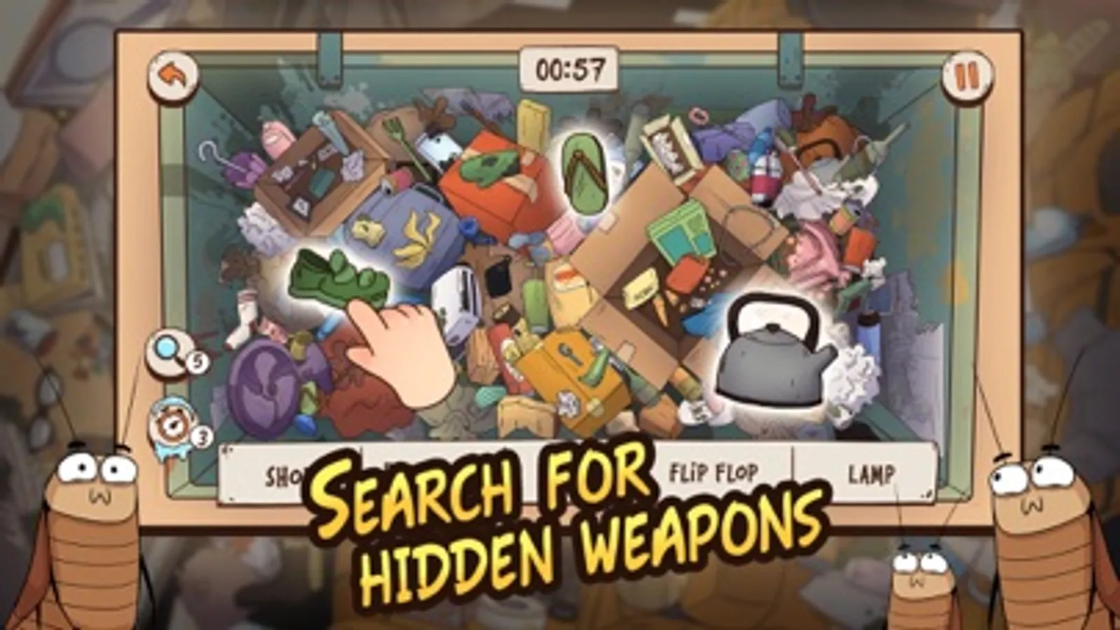 Oh, no! The cockroaches in your dumpster are planning to take over the world! Find the hidden weapons in each stage before the time runs out, then kill as many cockroaches as you can!