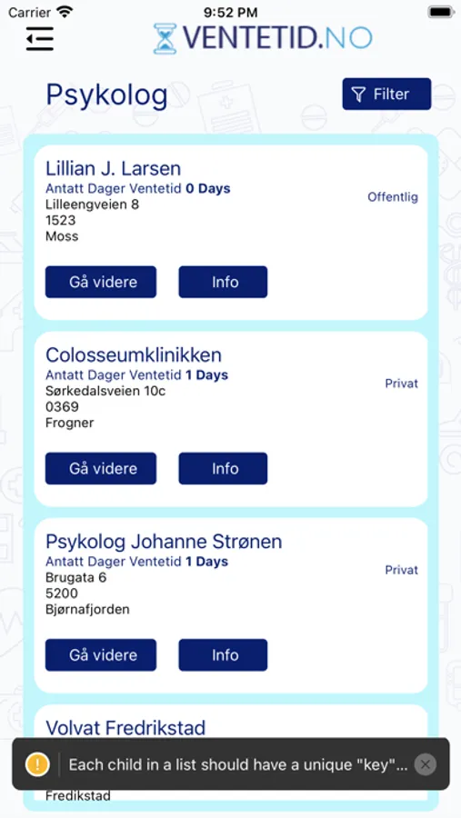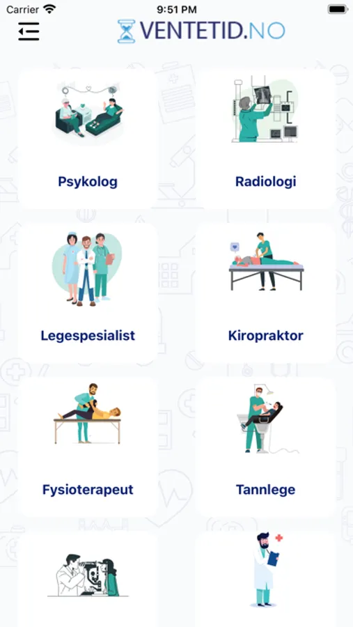 Ventetid.no gives you an overview of the expected waiting time at various healthcare providers