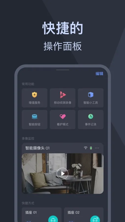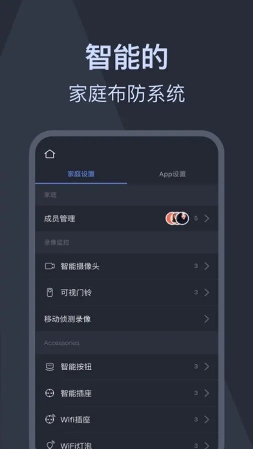 这个应用程序可以管理我们所有的官方安放配件,如门磁、红外门磁、遥控器、烟雾探测器等。它还可以与智能摄像头和智能插头一起使用,使用户可以观看实时视频或录制的文件,或远程打开/关闭家用电器。通过内置指南,用户即使没有手册也能快速运行系统,包括日常操作和专业设置。