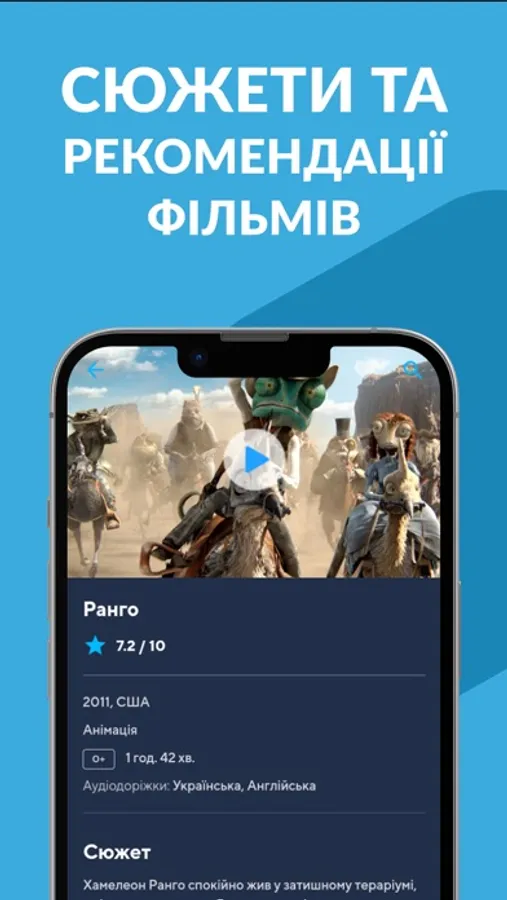 20000+ фільмів, серіалів, шоу, популярних у всьому світі. Вмикайте кіно в один клік та насолоджуйтеся переглядом без реклами.