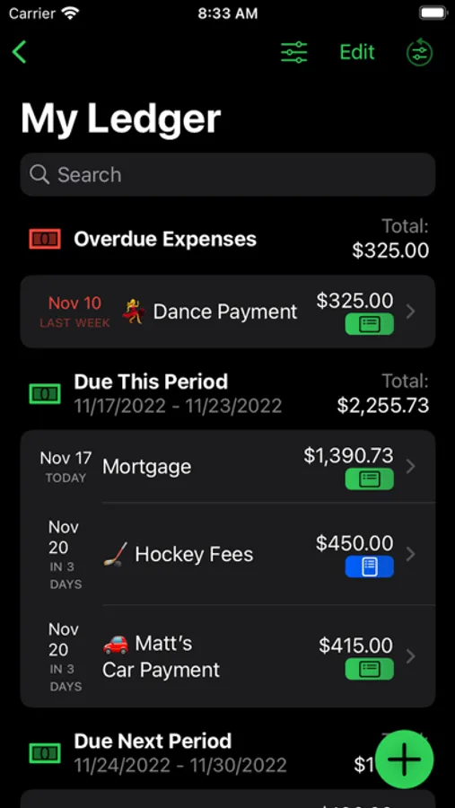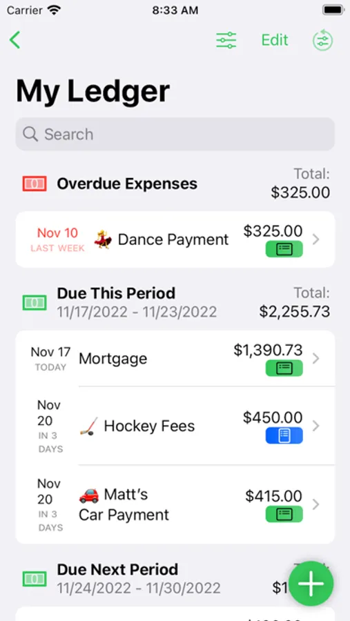 - Organize your upcoming bills by YOUR PAY SCHEDULE. Always know what's due this pay period!