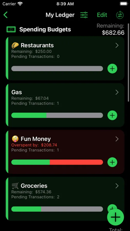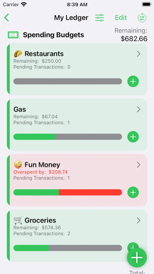 Once your bills are under control, you can take the next step - start creating budgets for your daily spending categories, and tell your money where to go, before you have a chance to spend it elsewhere. As you spend, update your budgets accordingly, and you'll know exactly where your money is going!