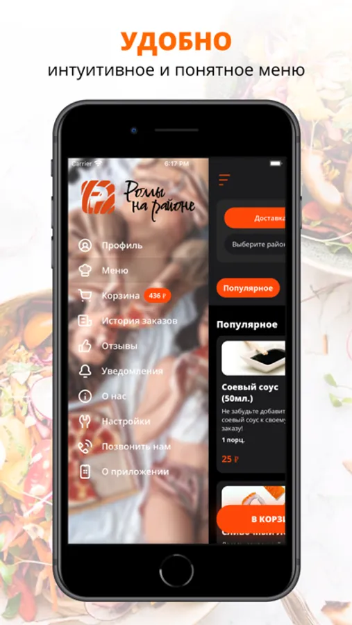 Приложение Роллы на районе — это удобный способ заказа еды домой или в офис! Мы готовим наши блюда из качественных свежих ингредиентов и доставляем еду по Саратову быстро и бережно.