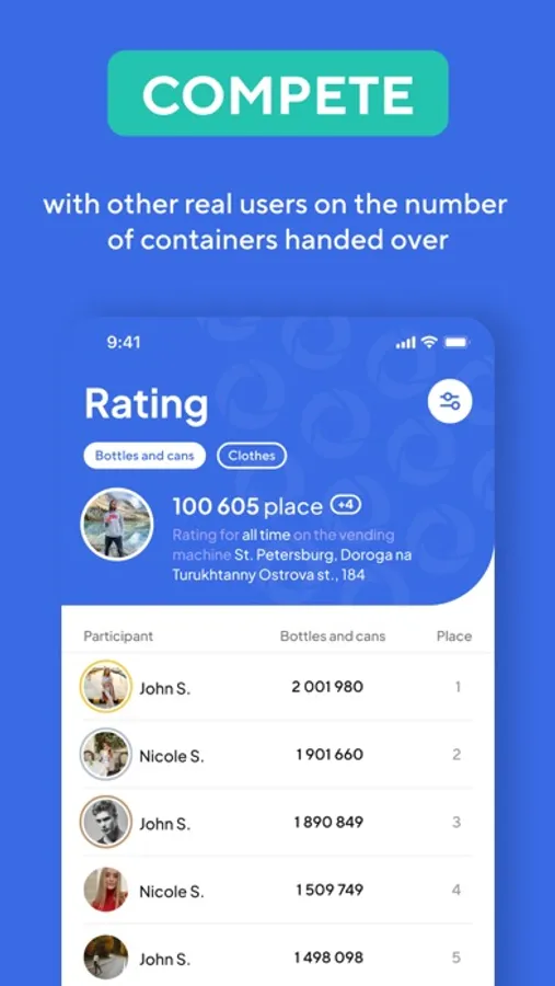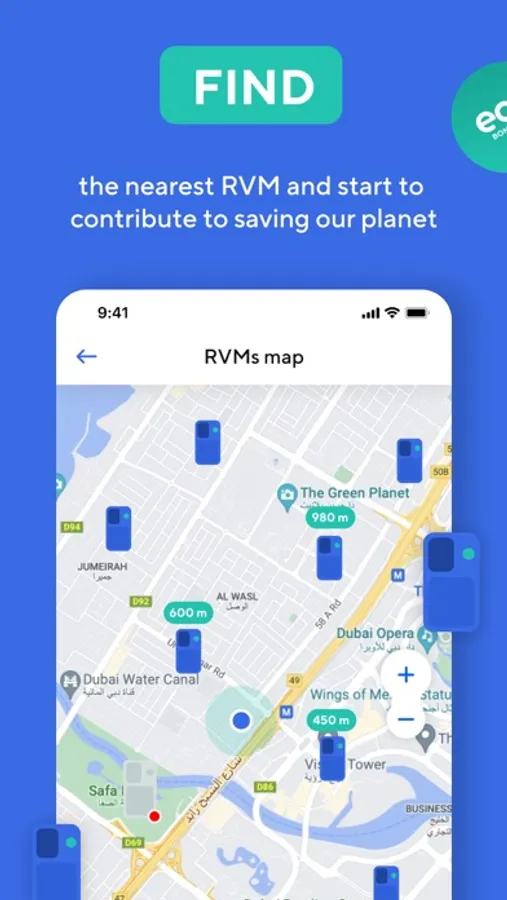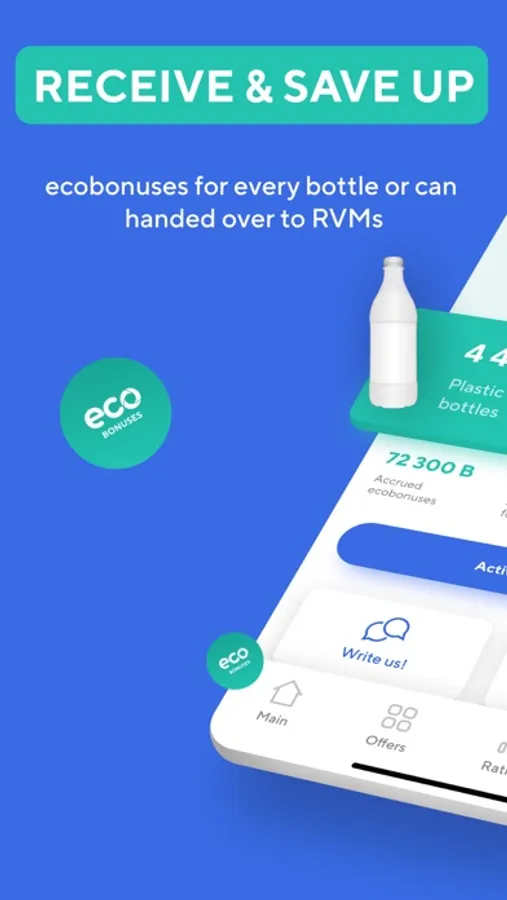 In order to get ecobonuses, use the RVMs map section in the app, find the nearest RVM and hand over empty plastic bottles or aluminum cans that have accumulated at your home.
