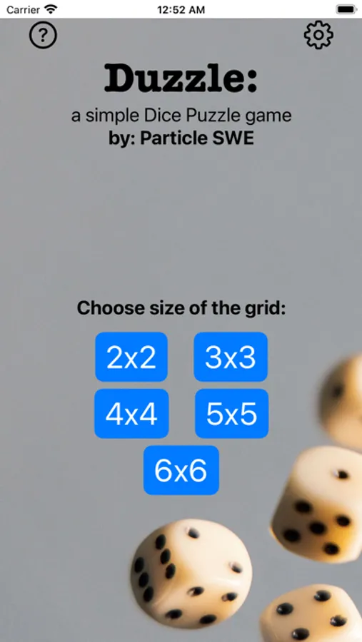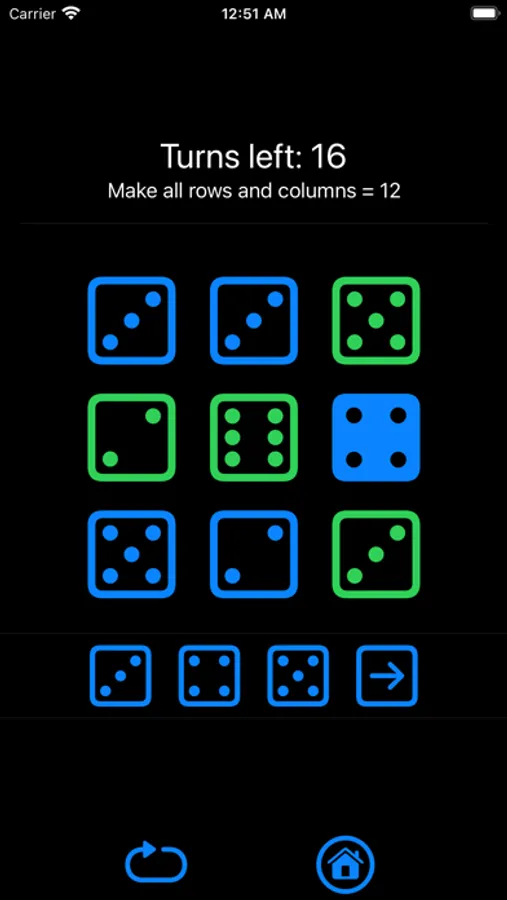 Duzzle is a simple Dice Puzzle game where you put dice in to a variety of sized grids. The aim is to make the sum of every row and column match the target sum in as few turns as possible. Try your luck at the different grid sizes and the two game modes and aim for the high score! There is also "Duzzle Yatzy" where the goal is to fill every square in the grid with the same pre-determined value.