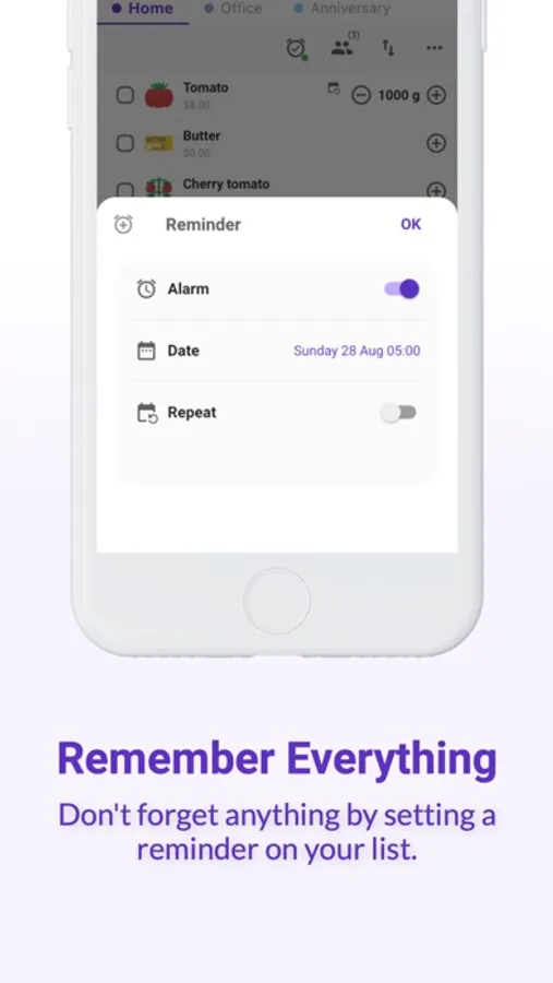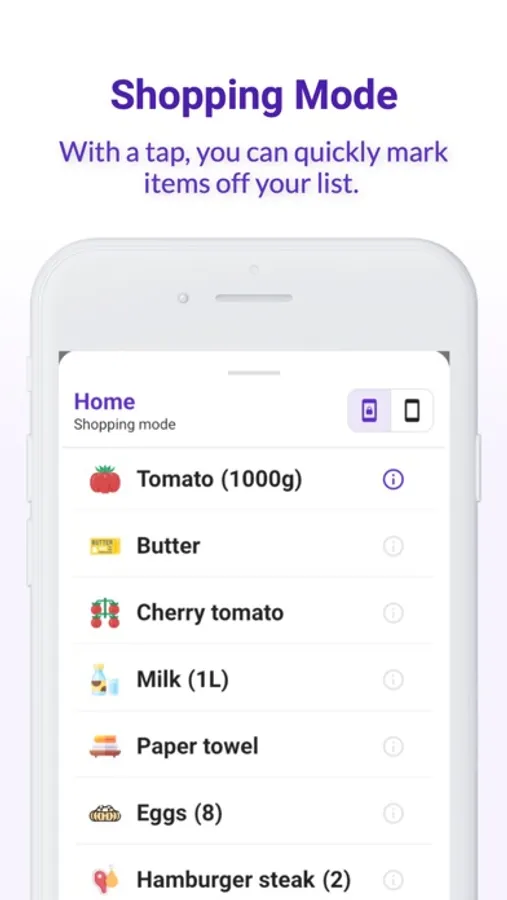 Switch to Shopping Mode to check off items from your checklist while you're shopping. Recurring items will be added back to your list again after checking them off.