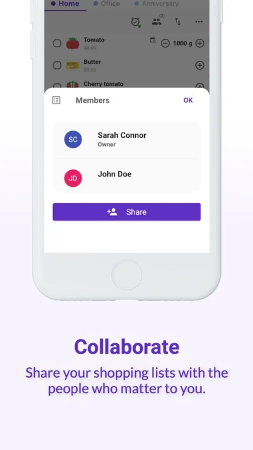 Share completed lists with friends, roommate or family members, or invite them to collab on to do lists together.