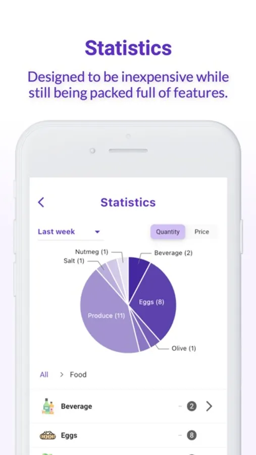 • See stats and analytics for your weekly, monthly or yearly shopping habits
