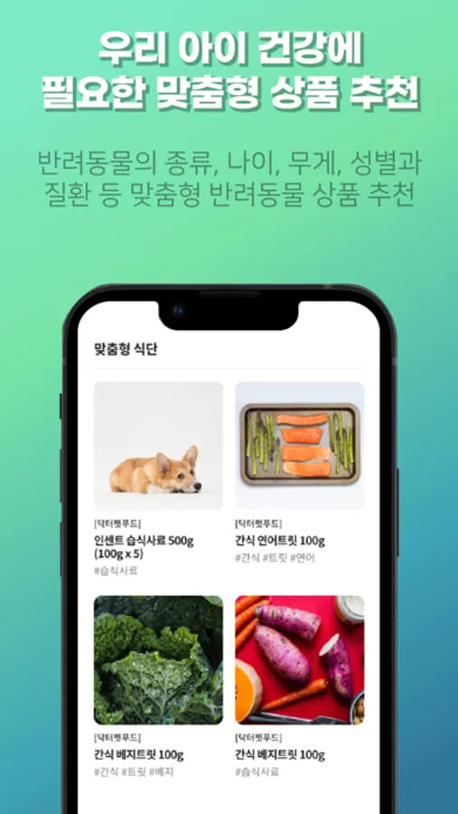 반려동물의 종류와 나이, 무게, 성별과 질환에 따라 맞춤형 “사료, 간식, 영양제“ 등 을 추천해 드립니다.