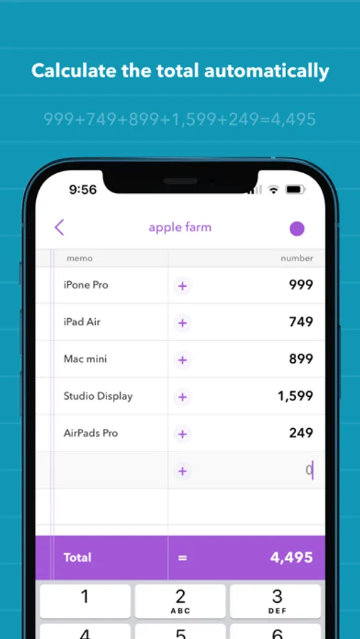 A UI similar to notepad and input numbers will automatically calculate the total.