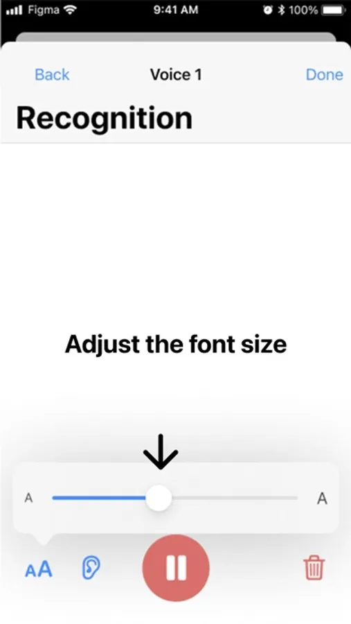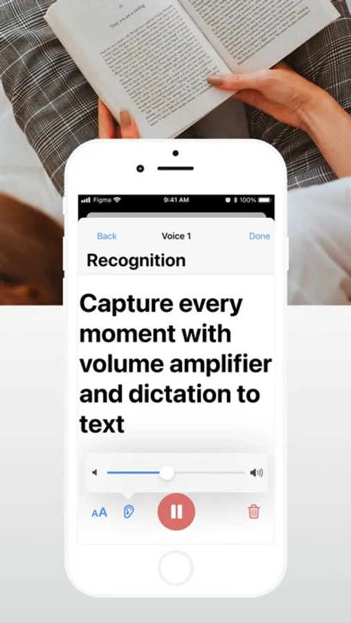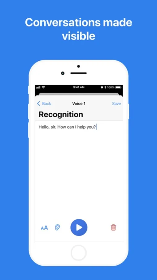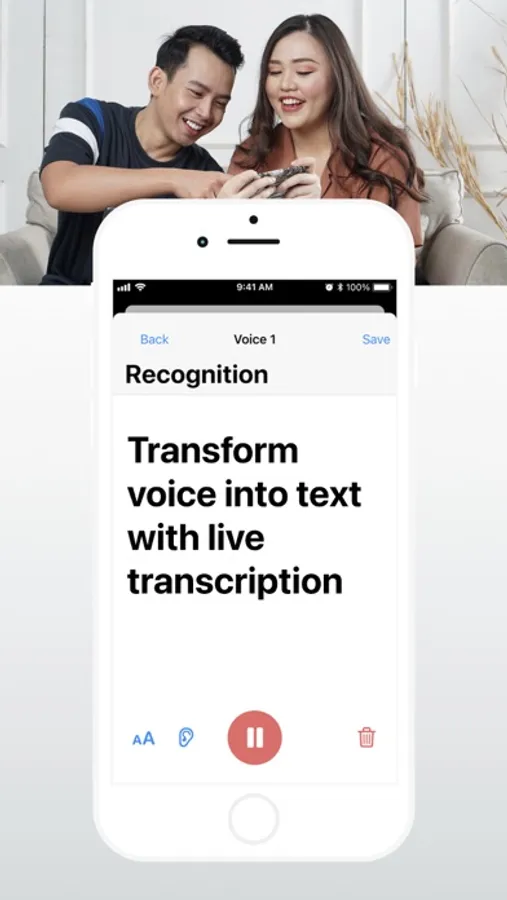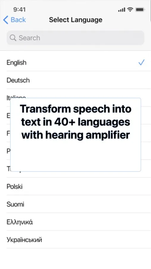 Hearing boost app provides you the way to transcribe speech to text to help deaf people to know what other people say. You have to choose from one of the 40+ languages and just start listening. There's also a possibility to enlarge the font for people with poor eyesight.