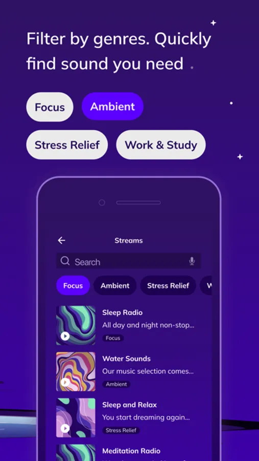 Lavender - is a new mindfulness app that helps bring relaxation and peace of mind into your life through an extensive ambient and nature sounds collection. Lavender is always up to date with soothing radio stations and sounds so you can unwind and sleep. So, whether you want less stress, get anxiety relief, improve your mental health, or fall asleep in seconds, Lavender is made for you to deal with that. We have: