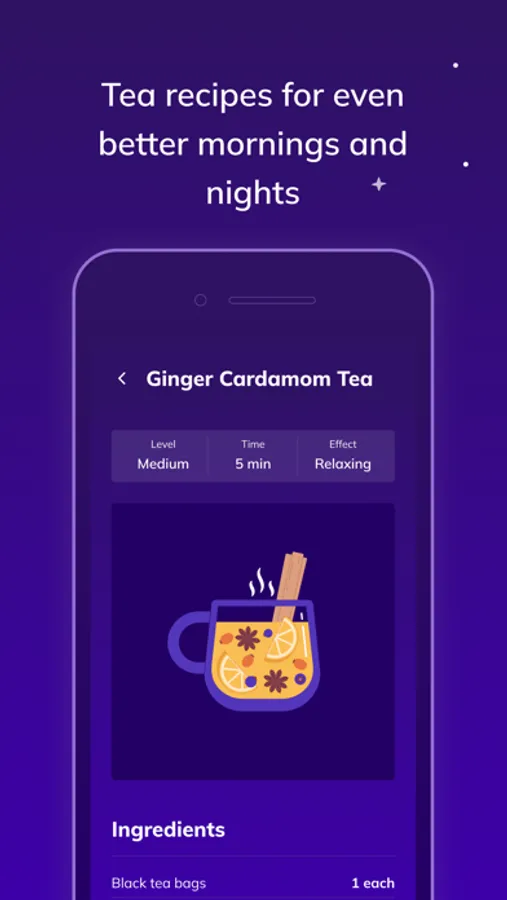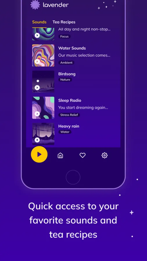 Quick access to your favorite sounds and tea recipes.