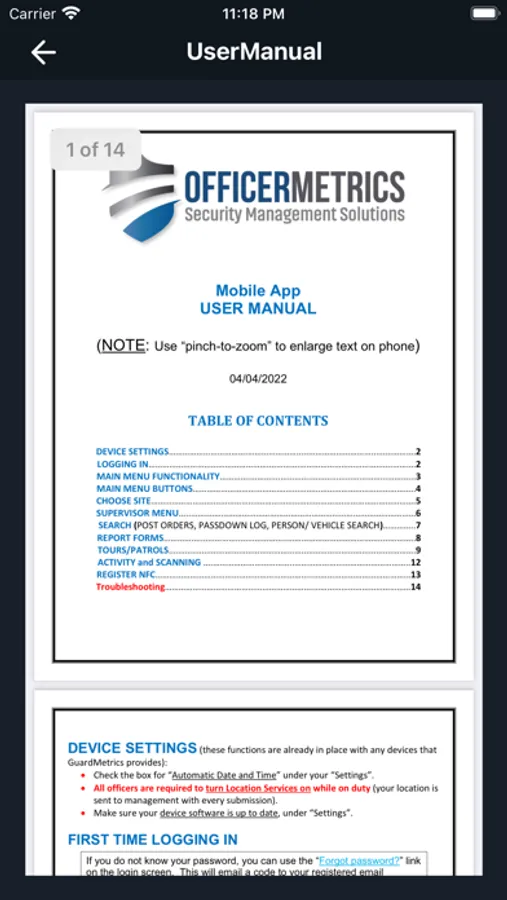 Early Access: “OfficerMetrics” exclusively for GuardMetrics customers. This security guard tour app is capable of collecting scans without cell service or Wi-Fi. OfficerMetrics is a user-friendly, complete officer management solution that includes the guard tour system for patrol management, custom forms & reports, time & attendance tracking, daily activity logs, incident reports, GPS tracking, auto-Geofencing, real-time alerts, trespass management, pass down logs, vehicle reports, fleet management, officer dispatch, a real-time web-portal, management reports, analytic reports, and many other useful features for security officer service providers.