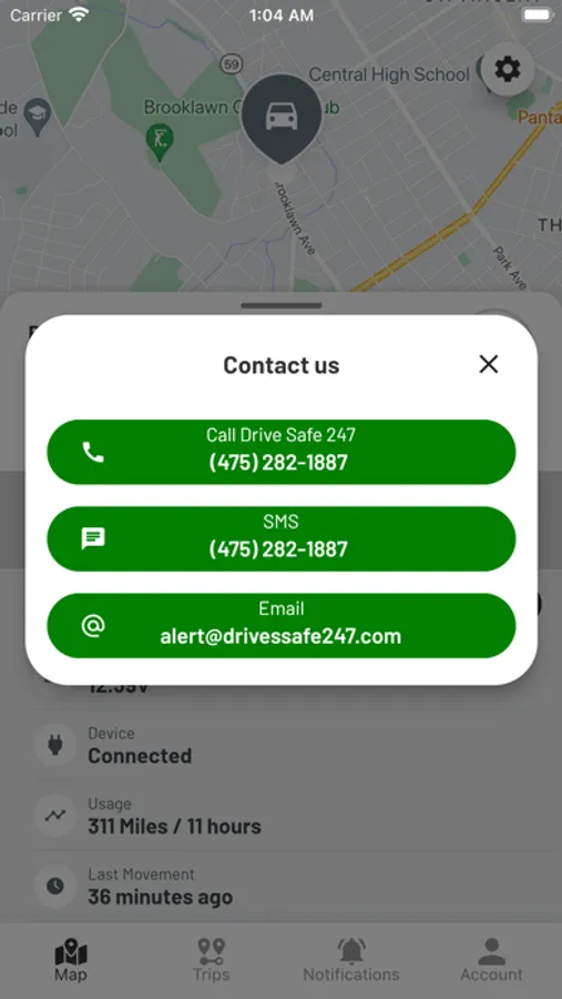 With a simple touch of a button on the app, the DriveSafe24/7 support team can be contacted immediately even on nights, weekends, and holidays.