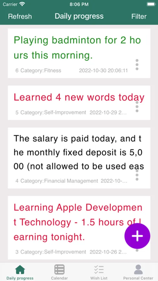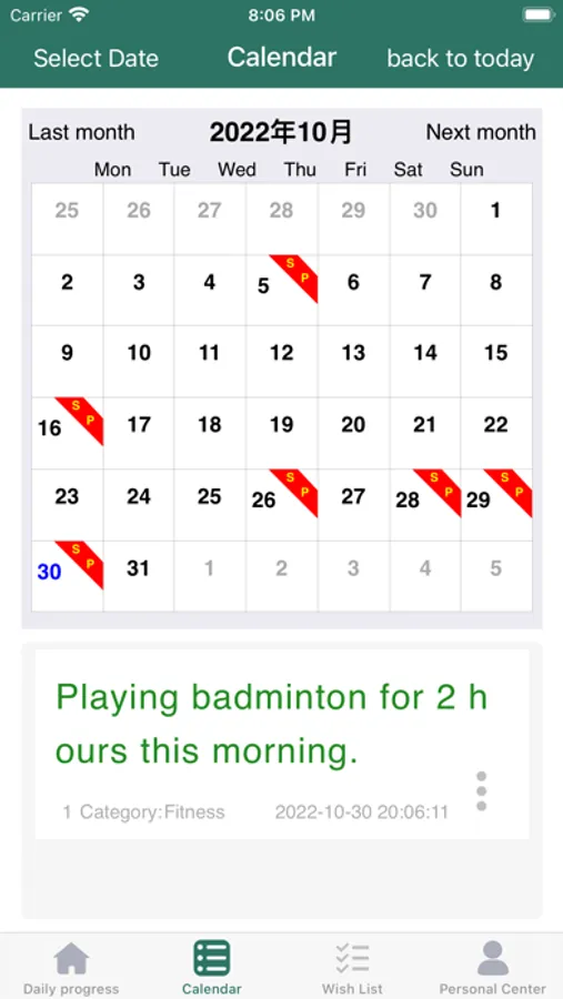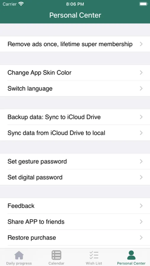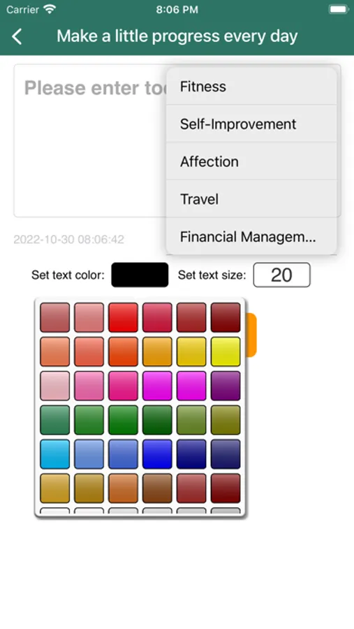1. This app can record your small progress every day, you can view it in groups, you can view it by month, you can also record a wish list, you can also customize the text size and color and the color of the app.