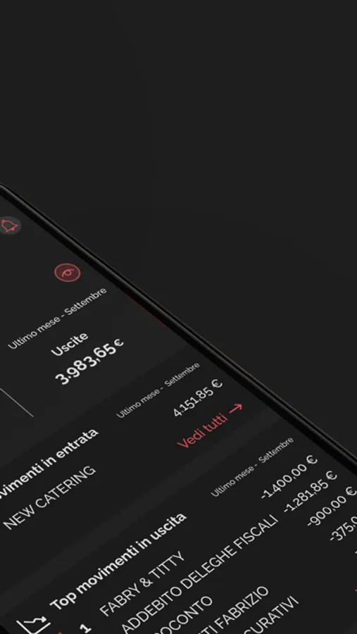 Top movimenti in entrata e in uscita, dove sono riportate le entrate e le uscite con importo rilevanti;