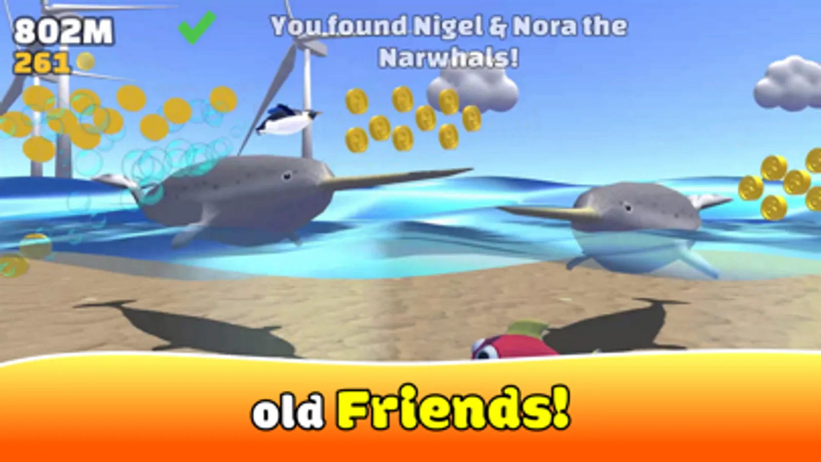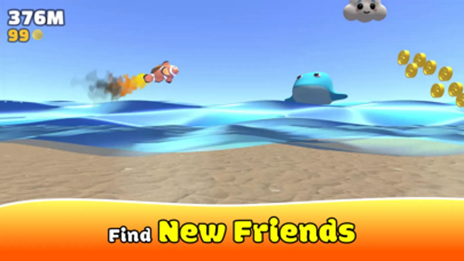 Collect all the characters including Nemo, Turtle, Penguin, Dolphin and Manta