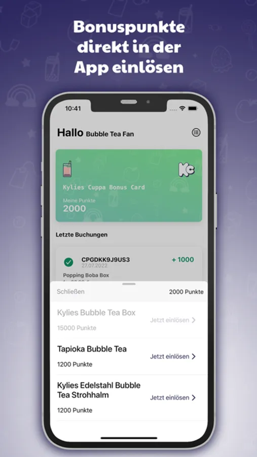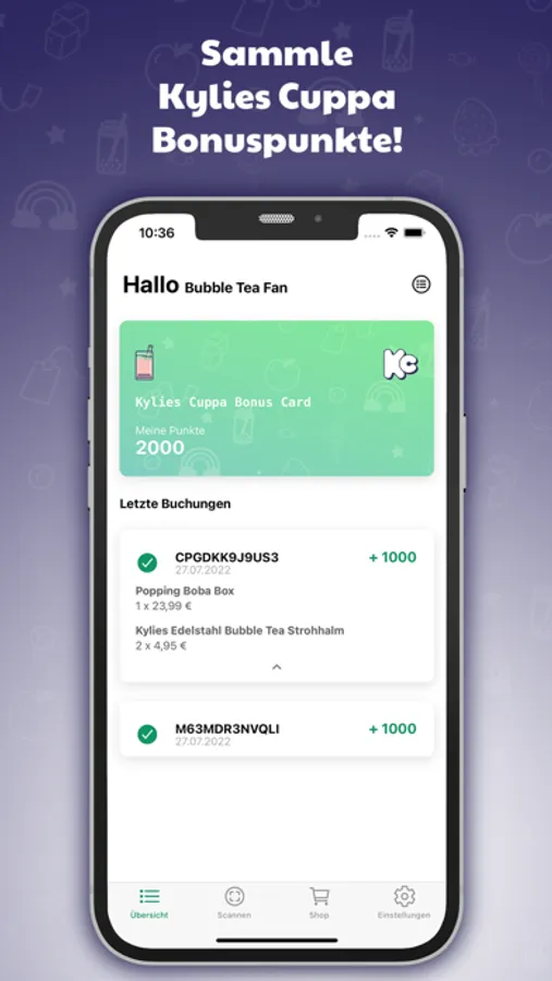 Die KyliesCuppa App: Herunterladen lohnt sich. Punkte sammeln und Prämien holen war noch nie so einfach! Sammle Punkt mit jedem leckeren Bubble Tea den du bei Kylies Cuppa einkaufst. In der App hast du den Überblick. Schaue dir die Prämien an, scanne Bonuscodes und habe Spaß mit Kylies Cuppa.