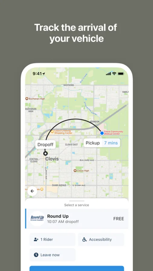 The Clovis Transit app offers an enhanced trip booking experience for our paratransit service, Round Up. Passengers can now use the app to easily schedule trips, track the arrival of the vehicles, and receive trip status notifications.