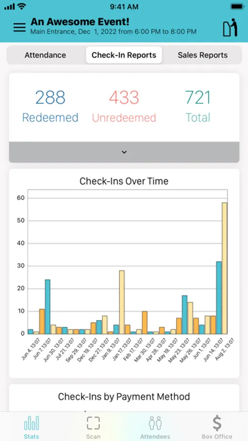 - Quickly validate and check in attendees using a QR Code scanner via your device's camera