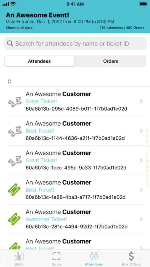 - Easily find attendees through search of last name, ticket number, or order number
